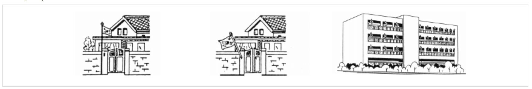 주택이나 아파트에서 국기를 게양할 경우 집 밖에서 보는 것을 기준으로 중앙 혹은 왼쪽에 게양하는 것으로 합니다.